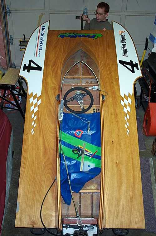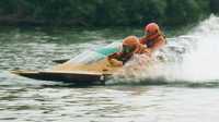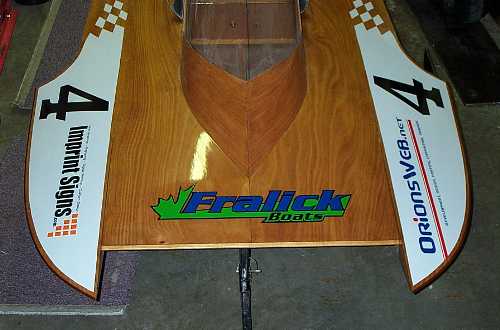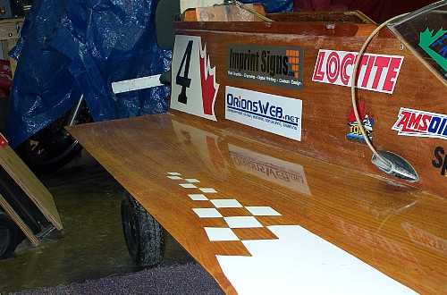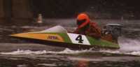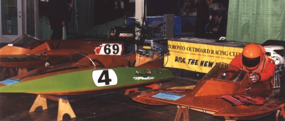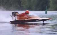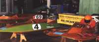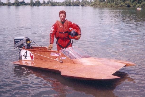 (ASR) (18K) 1997 - currently used This picture was taken at the 1997 APBA National Championships in Hinton, West Virginia. We liked the first France Racing Runabout we owned so much that when the only other one in existence went up for sale we bought it too. It proved to also be exceptional on the race course and helped to bring home another Canadian High Point Championship trophy to the Team. |